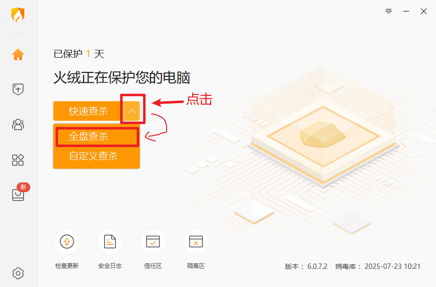 点击小箭头后,选择"全盘查杀"